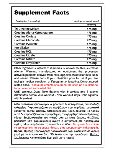 Το CreaMix είναι μια ειδικά σχεδιασμένη φόρμουλα η οποία περιλαμβάνει 10 διαφορετικά είδη κρεατίνης.