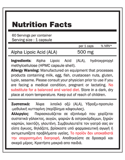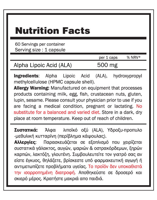 To Άλφα λιποϊκό οξύ (ALA) είναι ένα λιπαρό οξύ, πρωταρχικός ρόλος του οποίου είναι να μετατρέπει το σάκχαρο του αίματος (γλυκόζη) σε ενέργεια χρησιμοποιώντας οξυγόνο, μια διαδικασία που λέγεται αερόβιος μεταβολισμός. Ως συμπλήρωμα διατροφής, το ALA έχει αντιφλεγμονώδη και αντιοξειδωτική, καθώς αναχαιτίζει τη δράση των ελεύθερων ριζών και προστατεύει τα κύτταρα από τις αρνητικές συνέπειές τους. Το άλφα-λιποϊκό οξύ (ALA) λέγεται και «καθολικό αντιοξειδωτικό» επειδή είναι διαλυτό τόσο στο νερό όσο και στο λίπος, γεγονός που του επιτρέπει να λειτουργεί σε κάθε κύτταρο ή ιστό του σώματος.