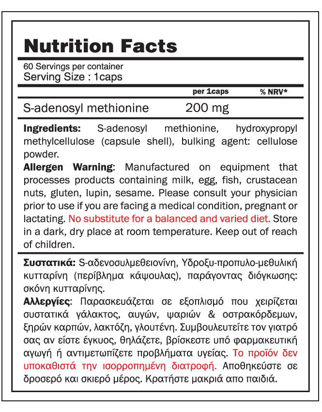 Το SAMe 200, κατασκευάζεται από την υψηλής ποιότητας πρώτη ύλη Adomix® και συσκευάζεται σε κάψουλα "DRcaps™" η οποία εξασφαλίζει ότι θα απελευθερώσει το περιεχόμενο της στο έντερο και όχι στο στομάχι, προστατεύοντας έτσι τη δραστική ουσία από τα οξέα του στομαχιού.